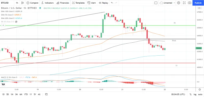 At the time of writing, Bitcoin was up by 0.33% to $62,426.0. A mixed start to the day saw Bitcoin fall to an early morning low $62,141.0 before rising to a high $62,426.0.